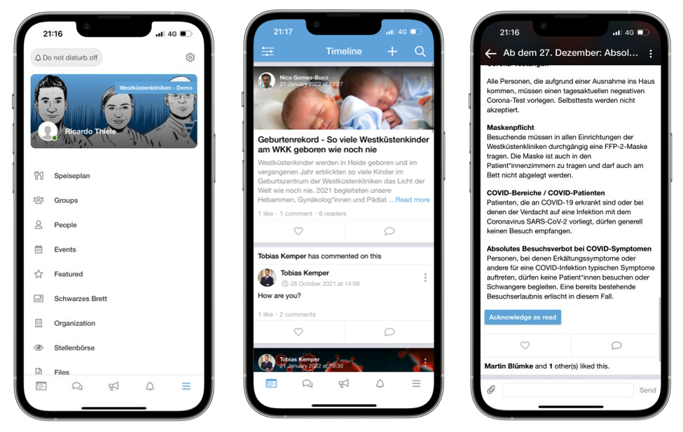 Just Social konzentriert sich auf News, Chats und Wikis und ist besonders benutzerfreundlich gestaltet. Der Funktionsumfang wurde in den letzten Jahren reduziert, sodass es sich nicht mehr um ein vollwertiges Intranet handelt, sondern um eine Mitarbeiter-App mit einer nativen App für iOS und Android. Dabei kann Just Social besonders mit einem schlichten Design, hoher Benutzerfreundlichkeit, spezialisierten Apps, einem nutzerfreundlichen Wiki und einem übersichtlichen Adminbereich punkten. Unternehmen wie AOK, FALKE und ADMEDES nutzen Just Social für ihre interne Kommunikation.