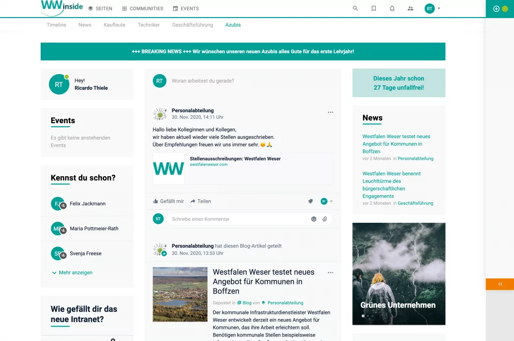 - Das Social Intranet verfügt über einen hohen Funktionsumfang.