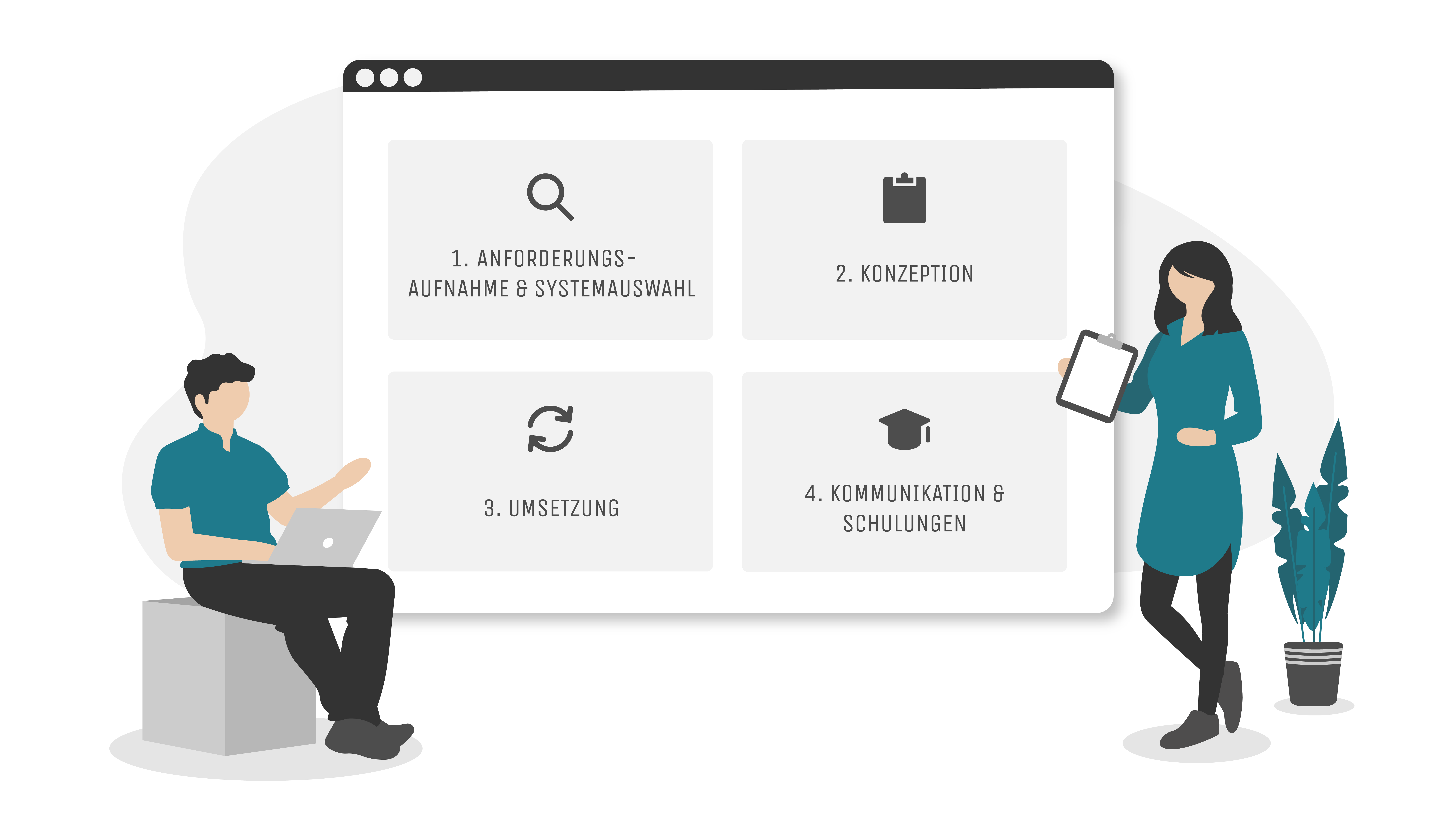 Mehr Informationen rund um die Anforderungsaufnahme und Systemauswahl findest Du hier. Sind die Anforderungen geklärt und das System steht fest, beginnt die eigentliche Intranet-Einführung. Wie Du bei der Konzeptions- und Umsetzungsphase vorgehen solltest, haben wir nachfolgend beschrieben.