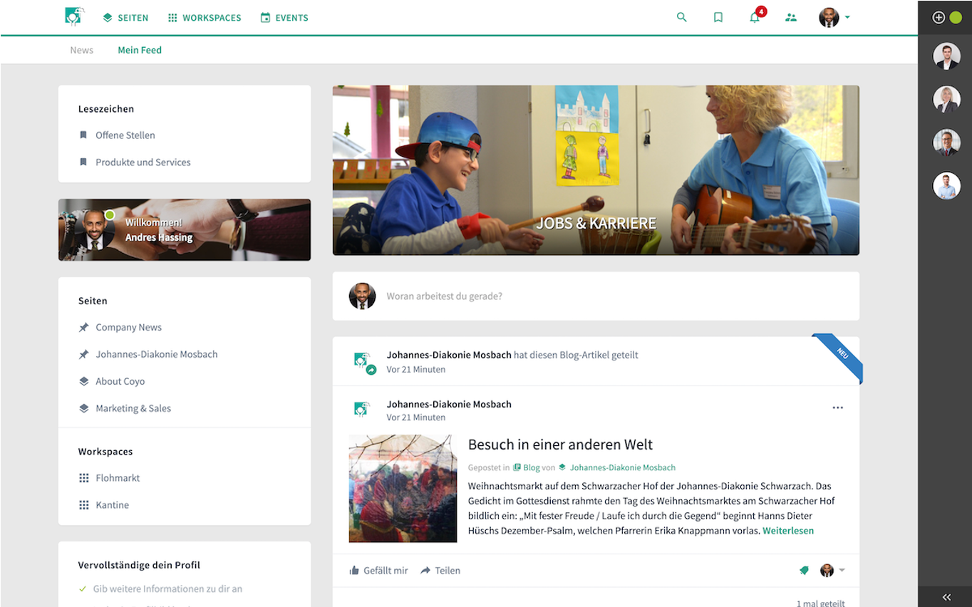 Die Johannes-Diakonie ist mit über 30 Standorten im Norden und Westen Baden-Württembergs dezentral aufgestellt. Das stellte die interne Kommunikation vor eine echte Herausforderung: Viele der 3.000 Mitarbeitenden waren bislang nicht optimal eingebunden, und das bestehende Intranet – eine SharePoint-Lösung – bot kaum mobile Zugänge. Die Folge: fehlendes Zugehörigkeitsgefühl und ein wachsender Druck zur Veränderung.